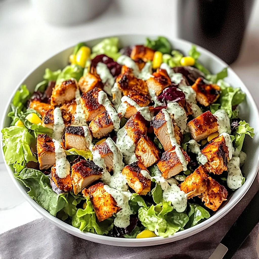Freshness abounds in every bite with a vibrant mix of greens and veggies that keep your palate excited. Hearty grilled chicken marinated in tangy BBQ sauce brings a smoky depth, making this salad filling yet healthy. Quick to prepare, it’s perfect for busy weeknights or gatherings, and the versatile ingredients can be easily customized. Plus, the zesty dressing ties everything together beautifully, ensuring that every forkful is packed with flavor!