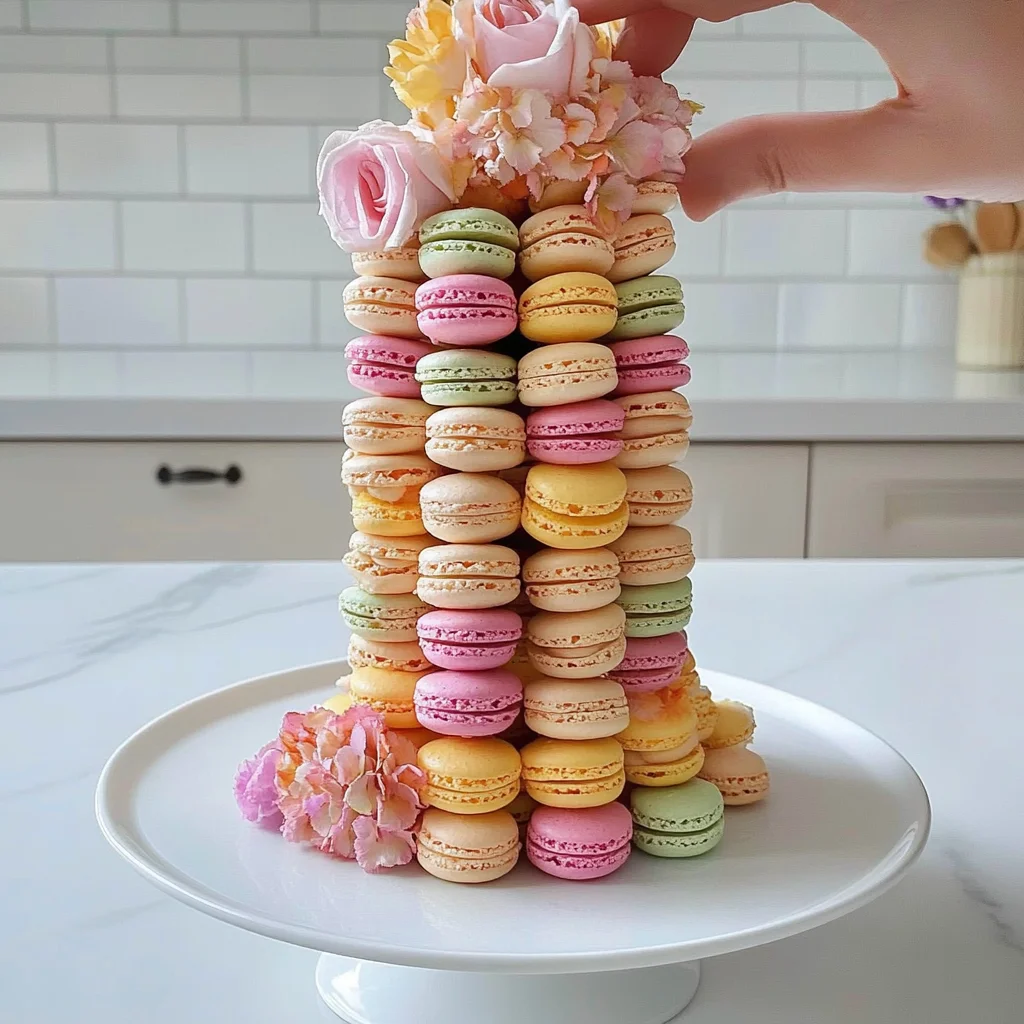This delightful macaron tower recipe yields about 4 servings—perfect for sharing with friends or family during celebrations! Keep in mind that each serving contains approximately 250 calories, making these treats both elegant and indulgent without overdoing it!