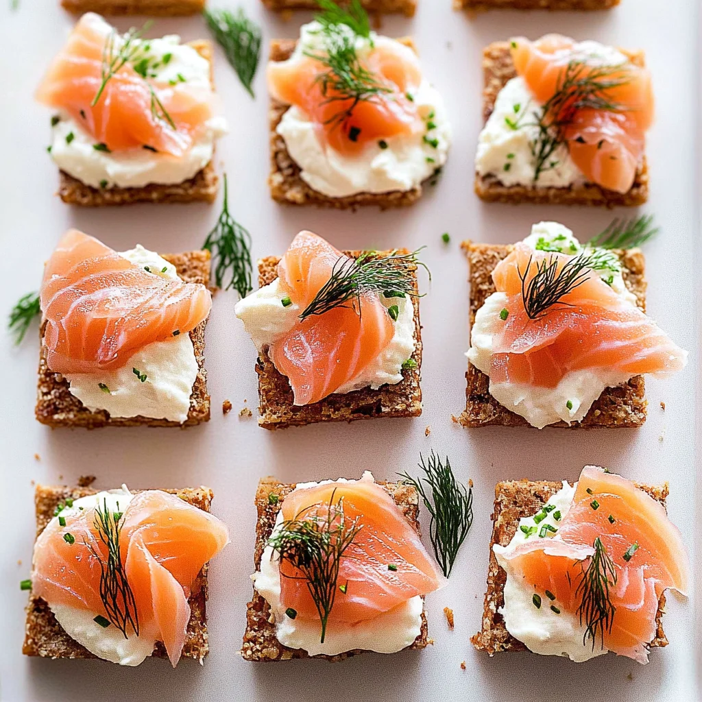 • Crunch Factor: Top your canapes with thinly sliced radishes or cucumbers for added crunch. This variation not only adds texture but also contributes a refreshing bite that balances beautifully with the rich smoked salmon.