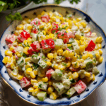 In conclusion, Vegan Creamy Corn Salad is a versatile and nutritious dish that everyone can enjoy. It combines fresh ingredients with a creamy dressing that enhances flavor without dairy products. Whether you serve it as a side or main dish during picnics or barbecues, its vibrant colors will please any crowd. Remember to customize it based on your preferences and enjoy its health benefits. Try this delightful Vegan Creamy Corn Salad today for a refreshing meal option!