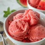 Watermelon Sorbet with No Ice Cream Maker makes for an ideal summer dessert! The freshness of watermelon combined with zingy lemon juice creates an explosion of flavors that pairs perfectly with sunny days or backyard barbecues. refreshing watermelon juice.